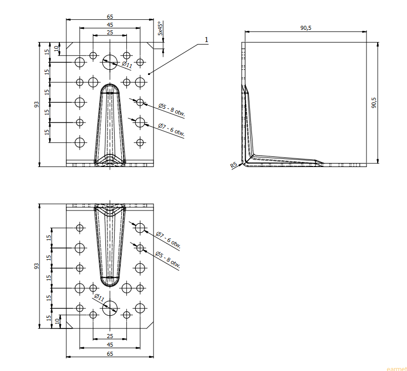 | Otwory 5,0 mm | 16 szt |