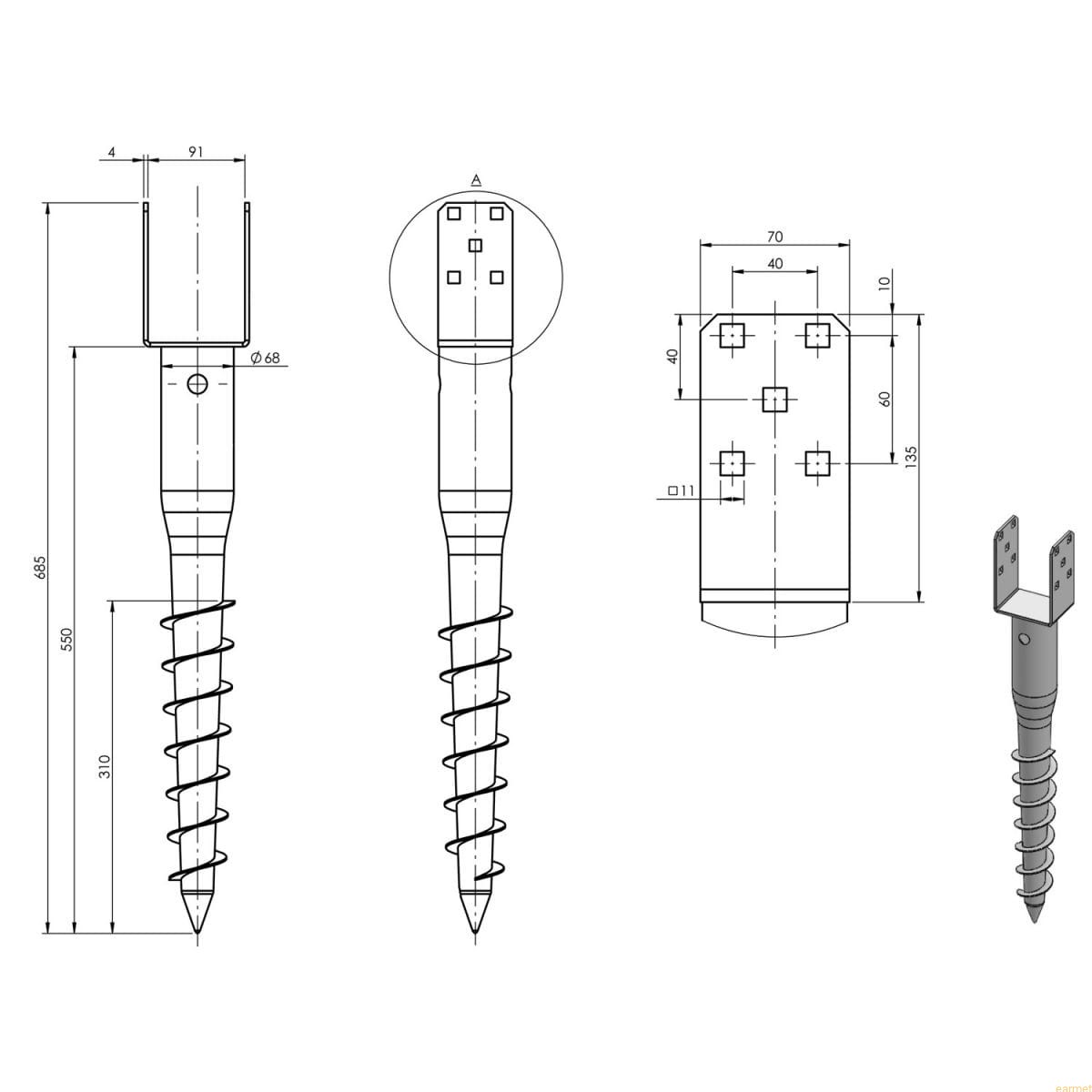 Kotwa do ziemi wkręcana PWU / 90x685x1,8 mm / wkręt do ziemi