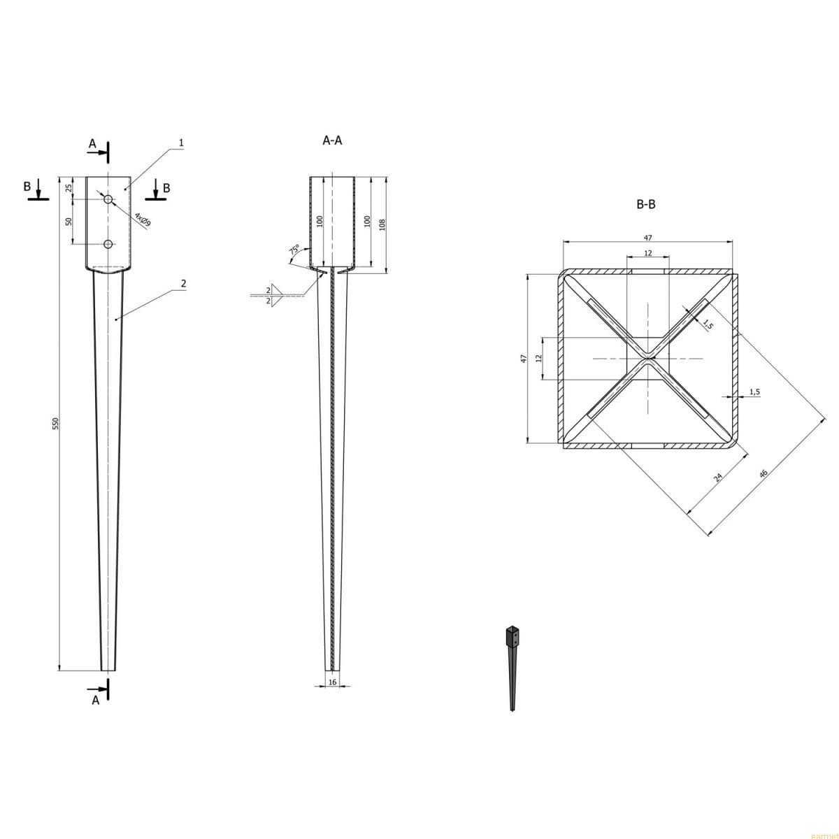 Kotwa wbijana PSG 45 / 46x100x550 / podstawa słupa wbijana