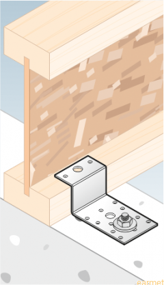 Łącznik do połączeń prostopadłych LZ, z gwoździami wbijanymi w jednym kierunku. W odróżnieniu od kątowników, łącznik ten posiada dodatkowe zagięcie zabezpieczające łączoną belkę przed obrotem.