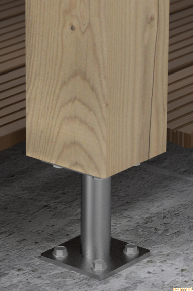 Gdy słup drewniany posiada przekrój kwadratowy, do łączenia go z betonem można śmiało wykorzystać podstawę PMF.