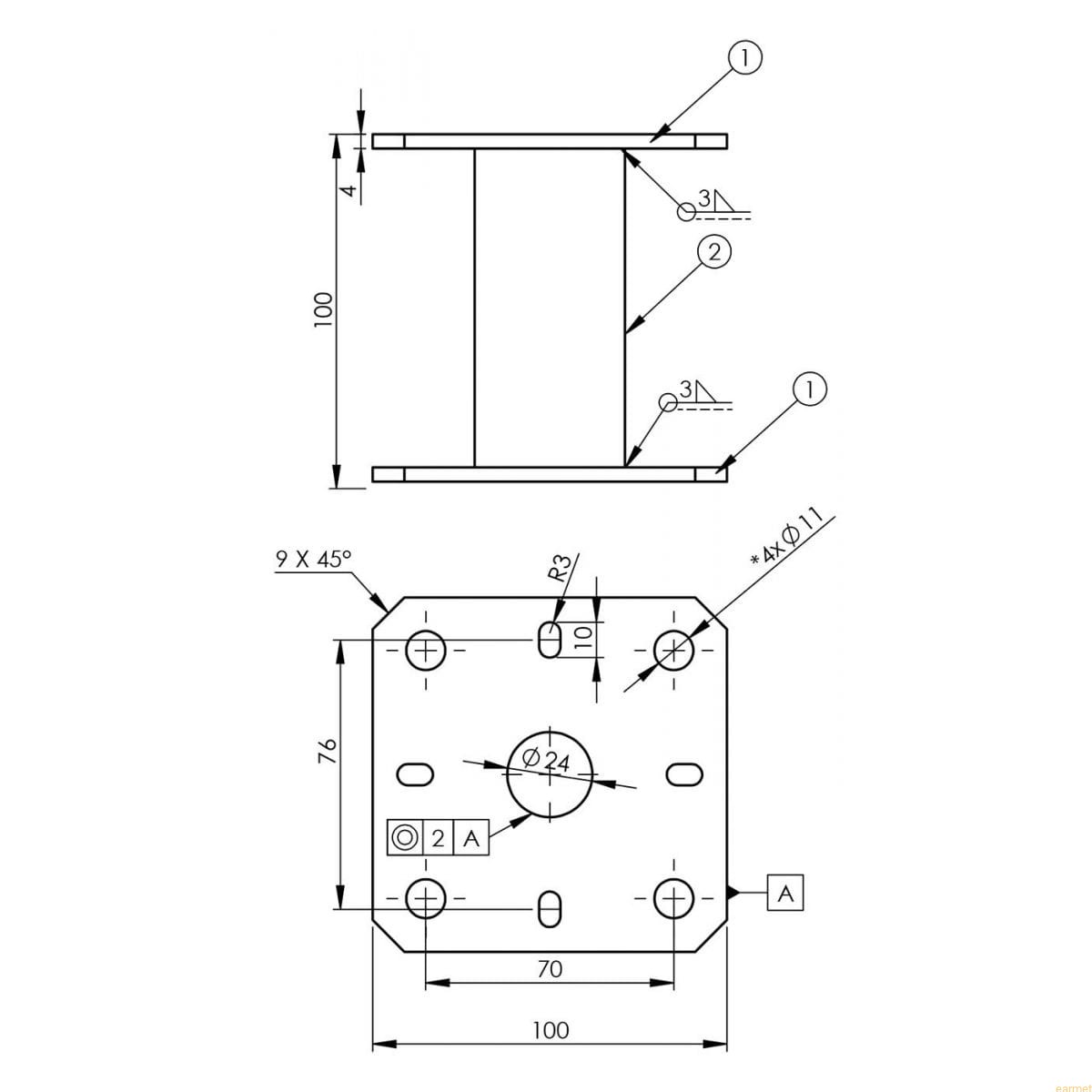 Podstawa słupa PMF 100 / 100x100x100x4,0 /