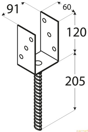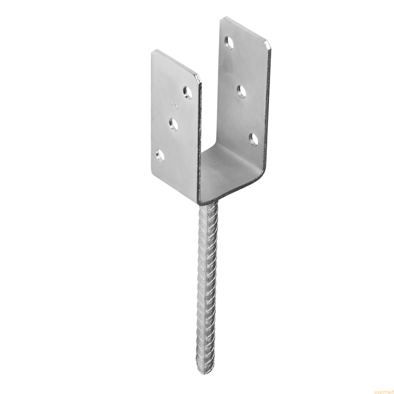 Ułatwia montaż elementów drewnianych z betonem. Materiał: S235 + ocynk galwaniczny srebny. Grubość: 8,0mm. Mocowanie: Śruby M10.