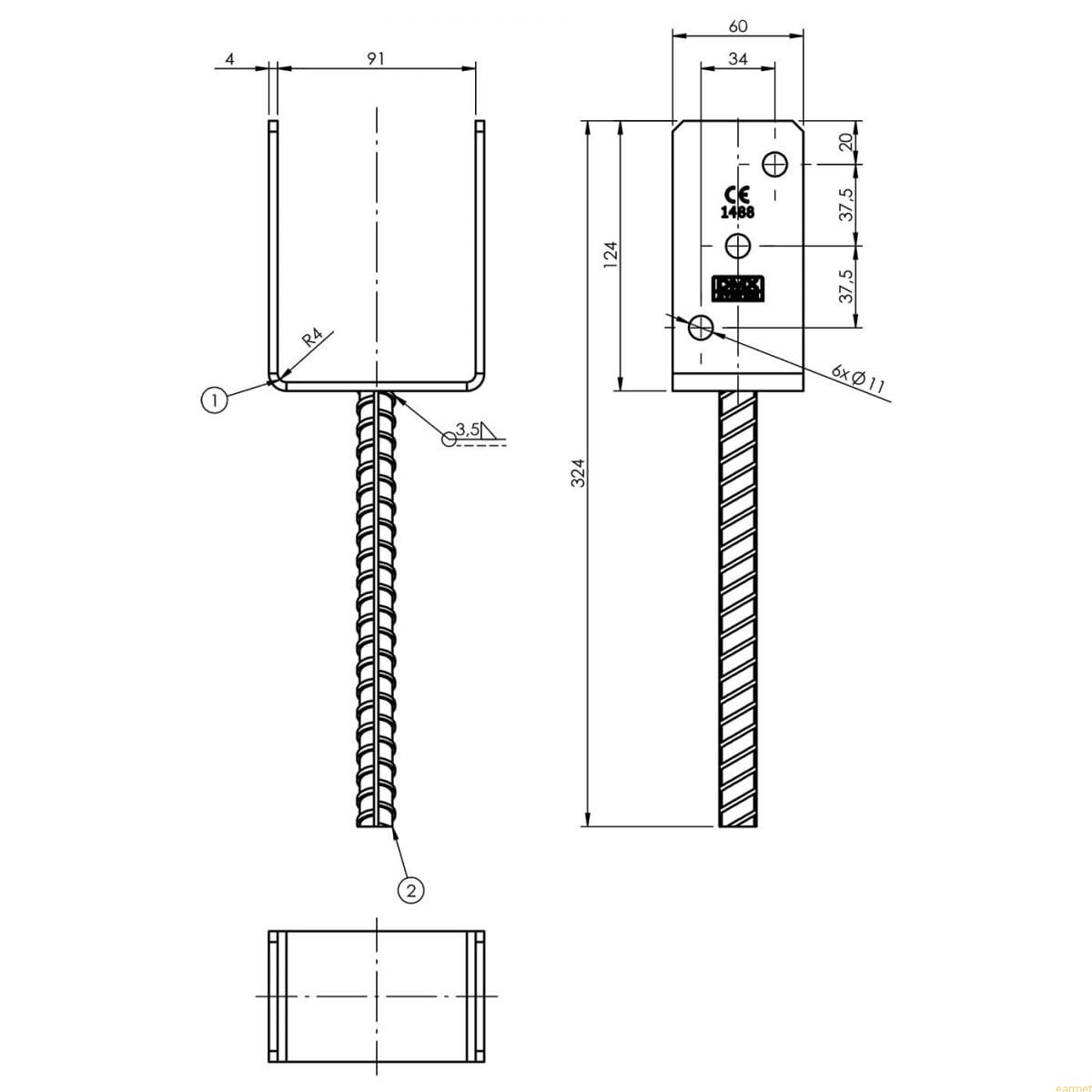 | Średnica pręta żebrowanego | 18 mm |