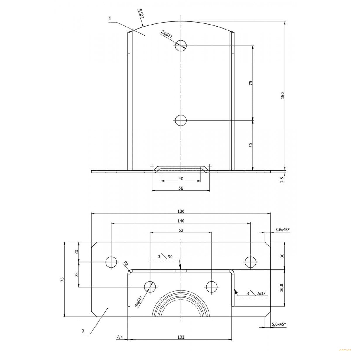| Wmiar podstawy dolnej | 75x180 mm |