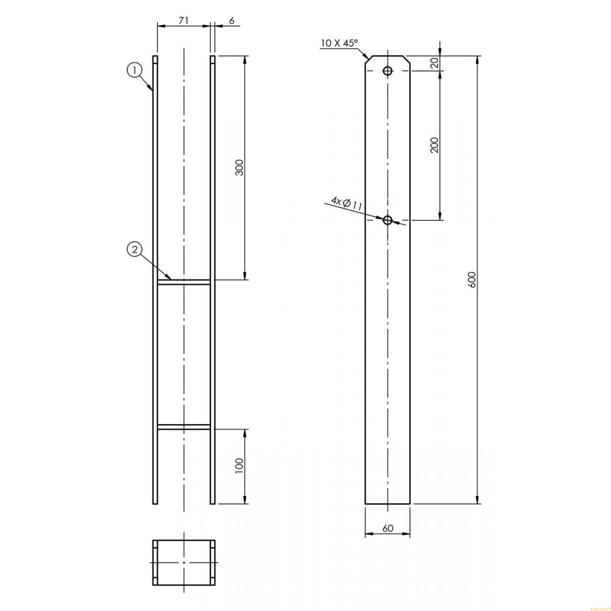 Podstawa słupa PSH 70 / 71x600x6,0 /