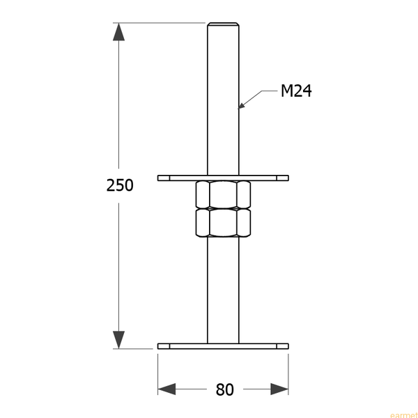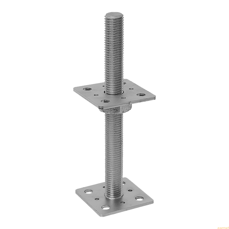 Blacha stalowa S235 + ocynk galwaniczny srebrny, średnica pręta regulacji to 24 mm + dodatkowa nakrętka.
