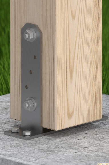 Podstawa PST ułatwia montaż elementów drewnianych z betonem, zapewnia odpowiednią dylatację drewna od podłoża.