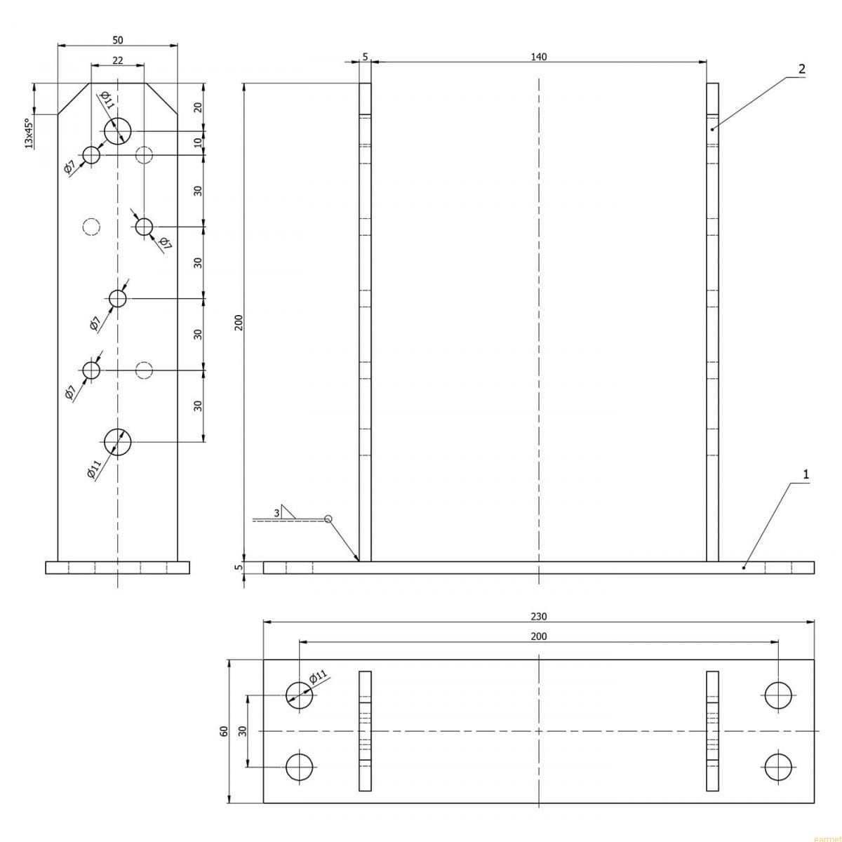 | Otwory w elemencie pionowym | 4x11 mm, 8x7 mm |