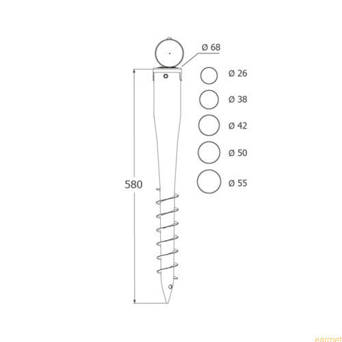 Podstawa słupa wkręcana PWO / 68x550x1,8 mm /