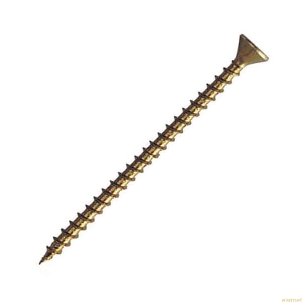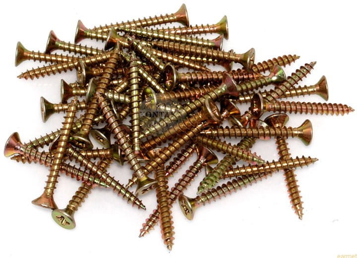 Wkręt hartowany wkręt do drewna i do płyt wiórowych z łbem stożkowym płaskim, nacięcie krzyżowe PZ, ocynkowany na żółto, woskowany