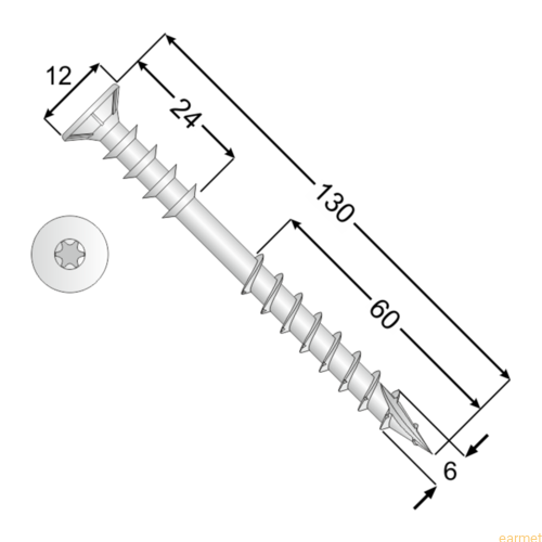 - frezujące żebra pod główką — ułatwiają osadzenie i sprawiają, że wkręt idealnie licuje z podłożem,